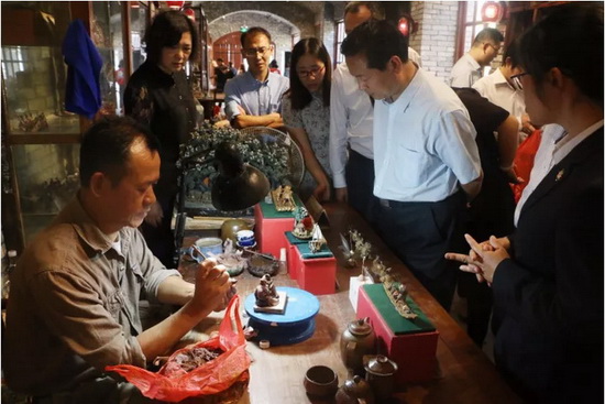 11月1日下午,中共淄博市委宣傳部副部長(zhǎng)鞏緒民一行十余人參觀考察石灣古鎮(zhèn)文創(chuàng)園和南風(fēng)古灶,學(xué)習(xí)園區(qū)在文化創(chuàng)意產(chǎn)業(yè)的做法和經(jīng)驗(yàn)。