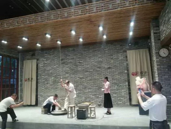 在導(dǎo)游的帶領(lǐng)下,我們來到了另一條古巷:有家耀保詠春拳館,對面有進(jìn)士居,這里有瀑布,瀑布下的水池中有錦鯉游來游去,旁邊是一個寬敞的廣場,有一座古窯映像館,里面有陶瓷藝術(shù)大師在手捏陶瓷,捏出來的小人只有一厘米那么高,形象維妙維肖,栩栩如生,很多人都好奇地圍觀,發(fā)出由衷的贊嘆!最讓人感興趣的是觀看陶瓷藝人現(xiàn)場推坯表演。表演區(qū)里座無虛席,等待大師出場,只見兩位師傅從門簾后走出來,一位師傅兩手捧握一塊陶泥,另一位師傅抓住從房頂上垂下來的繩索,右腳不停地踏動支撐在地上的木盤。手持陶泥的師傅把陶泥放在轉(zhuǎn)動的木盤上,隨著手形的變換,陶泥頓時象有了生命似的變幻無窮,時而是碗,時而是盆,時而是缸,時而是壇,時而是罐,看得人眼花繚亂。好多人都跑到表演臺去貼身拍攝,坐在觀眾席上的人大多也站了起來,紛紛拿出手機(jī),留下這神奇的瞬間。