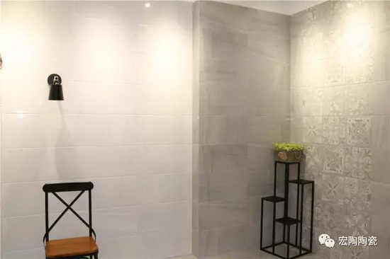 空間,講求的是一種簡約之美。大地色瓷磚間隔鋪貼,層次分明,內(nèi)斂而不張揚,在金色花朵的映襯下,多了一分低調(diào)奢華的況味。