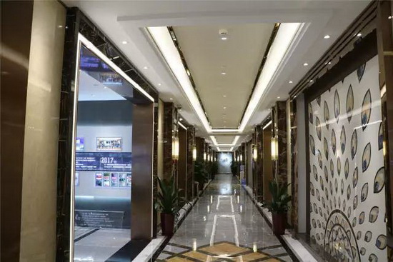 走進展館寬敞的中空大堂,地面鋪貼的宏陶“卡布奇諾”大理石瓷磚與大堂天花上一排排鋼琴面板狀的發(fā)光吊頂相互輝映,加上墻壁不銹鋼條型走柱點綴裝飾,整個大堂格調(diào)低調(diào)奢華,簡約中又透出龍頭企業(yè)的氣勢。