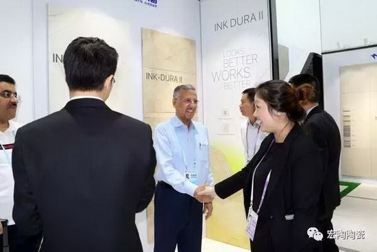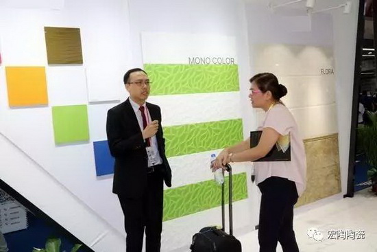 宏陶所屬集團(tuán)出口部總經(jīng)理伍總接受中央電臺經(jīng)濟(jì)之聲頻道和新華社記者采訪時表示,宏陶新款大理石瓷磚這次在廣交會完美亮相,代表了行業(yè)更高技術(shù)和更高品質(zhì),有釉,但超耐磨,坯釉相融,突破了行業(yè)發(fā)展的瓶頸。集合了當(dāng)今陶瓷墻地磚超前的科技成果和裝飾技術(shù),創(chuàng)造了一個全新品類,為行業(yè)發(fā)展指引了方向。產(chǎn)品紋理立體逼真,使用功能強大,滿足不同喜好或不同空間的需求,令客商們不無驚嘆稱好,甚至出現(xiàn)了客商當(dāng)天踴躍下定單的場面。
