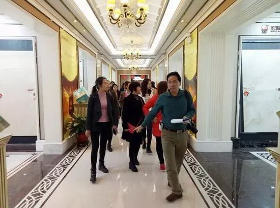 上午10點40分,宏陶陶瓷展館大堂熱鬧起來,原來清遠生產(chǎn)基地的女神們已抵達展館,并且受到了宏陶總部接待組美女們列隊鼓掌歡迎。