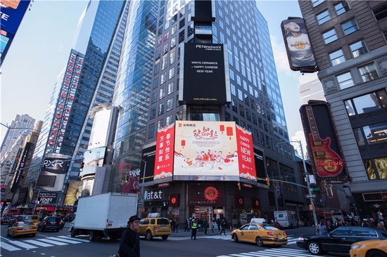 1月28日,中國春節(jié),全球同賀;春節(jié)期間,宏陶陶瓷亮相紐約時代廣場,向全世界人們致以中國年的問候!