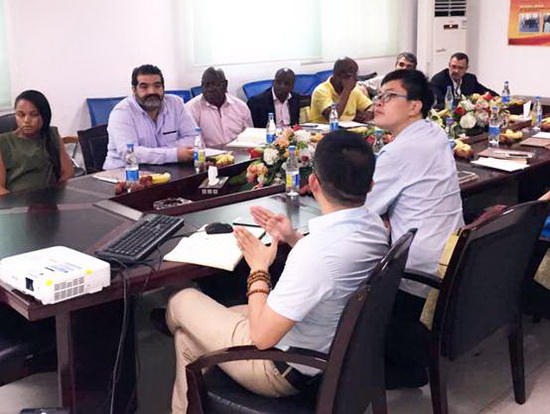 外國嘉賓在宏陶陶瓷展廳參觀過程中,對宏陶陶瓷“新、精、美”的瓷磚產(chǎn)品贊不絕口。宏陶出口部領導為到訪客人詳細介紹了宏陶陶瓷的企業(yè)實力、品牌文化和產(chǎn)品優(yōu)勢。羅安達市市長對宏陶陶瓷強大的品牌實力給予了高度的評價,并表示有意向選購宏陶仿古磚、釉面磚和瓷質(zhì)拋光磚產(chǎn)品作為羅安達市區(qū)新建學校的裝飾用磚。
