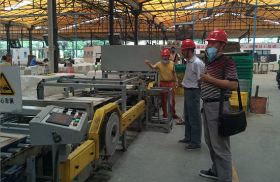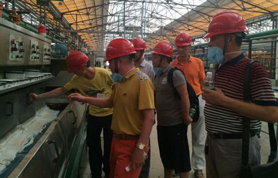 CTC工作組成員在會上闡述了當前我國《陶瓷墻地磚膠粘劑粘結(jié)強度試驗用瓷磚標準樣品》的使用情況以及宏陶陶瓷參與此國家標準物的研制工作的重大意義。會議結(jié)束后當天下午,CTC工作組一行三人到宏陶陶瓷佛山生產(chǎn)基地參觀考察,與宏陶研發(fā)人員一同探討《陶瓷墻地磚膠粘劑粘結(jié)強度試驗用瓷磚標準樣品》的技術(shù)要求和性能指標,并對該項國家標準物的研制進行現(xiàn)場指導。