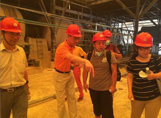 宏陶副總經(jīng)理歐家瑞(左二)為CTC工作組介紹企業(yè)生產(chǎn)情況
