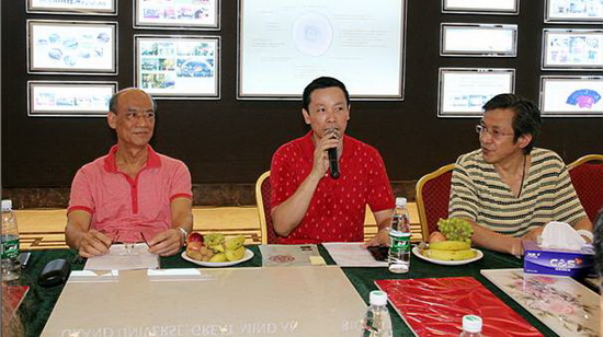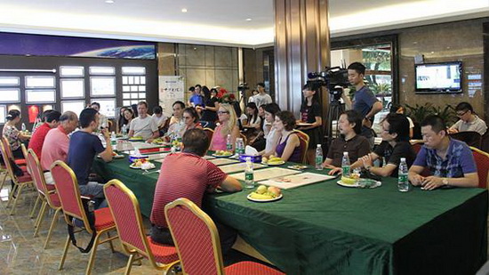 宏陶市場總監(jiān)霍達(dá)炎(左二)在交流會(huì)上發(fā)言