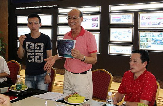 宏陶副總歐家瑞為中美陶藝家介紹公司產(chǎn)品