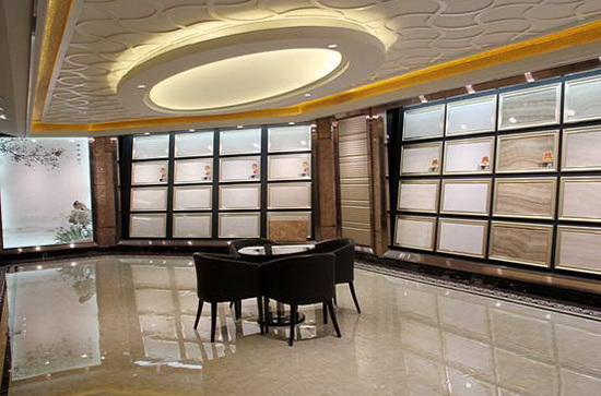 宏陶近期推出的400X800(mm)創(chuàng)新規(guī)格大理石瓷磚以全新的斜板選材區(qū)配實(shí)景體驗(yàn)空間立體展示,給消費(fèi)者賞心悅目的感受。