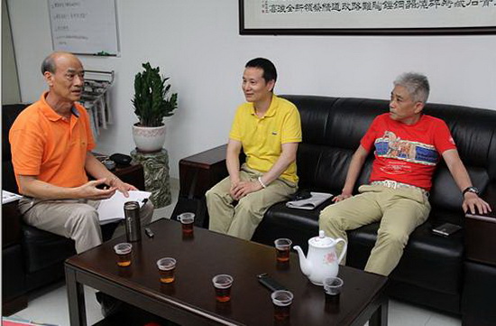 《建材天地》社長羅青(中)采訪宏陶企業(yè)副總歐家瑞(左一)