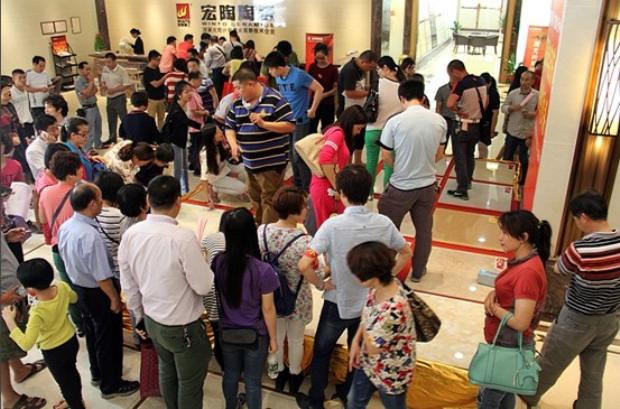 當(dāng)天下午1點(diǎn)30分,佛山三水100多名參加活動(dòng)的業(yè)主準(zhǔn)時(shí)抵達(dá)宏陶陶瓷總部展廳,整個(gè)展廳大堂瞬間熱鬧起來(lái)。大堂右側(cè)的產(chǎn)品“特供秒殺”區(qū),最為引人注目。