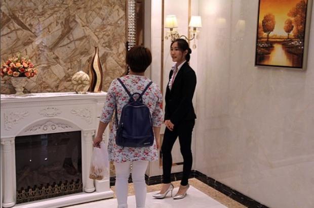 宏陶導(dǎo)購(gòu)在為業(yè)主介紹產(chǎn)品