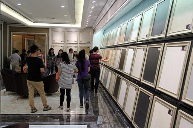 業(yè)主在仿古磚選區(qū)選購(gòu)
