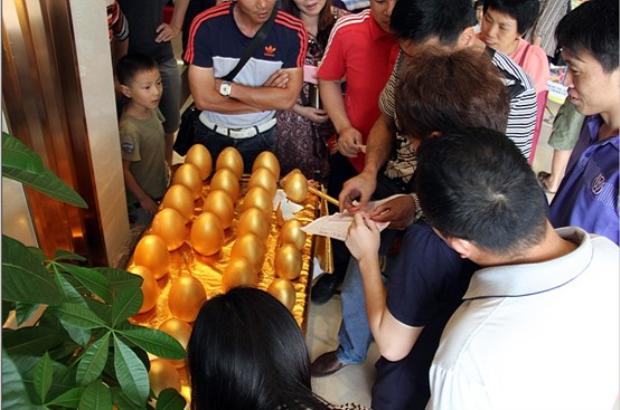 秒殺區(qū)舞臺(tái)前面又是另一番光景,金燦燦的金蛋周圍擠滿了爭(zhēng)先舉錘砸蛋的人群。據(jù)了解,現(xiàn)場(chǎng)前15名下定滿5000元的業(yè)主都有機(jī)會(huì)參與砸金蛋,砸出現(xiàn)金,砸出驚喜。