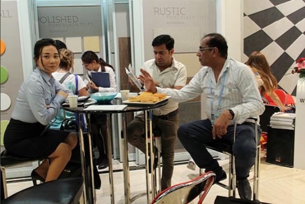 宏陶出口部精英為客商介紹產(chǎn)品優(yōu)勢