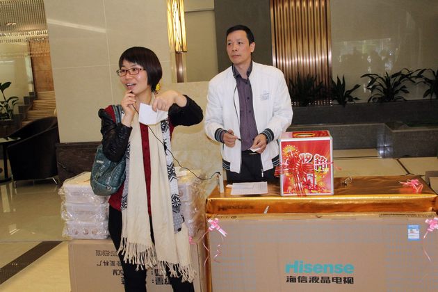 圖4、宏陶經(jīng)銷商唐榕英女士宣布抽獎規(guī)則