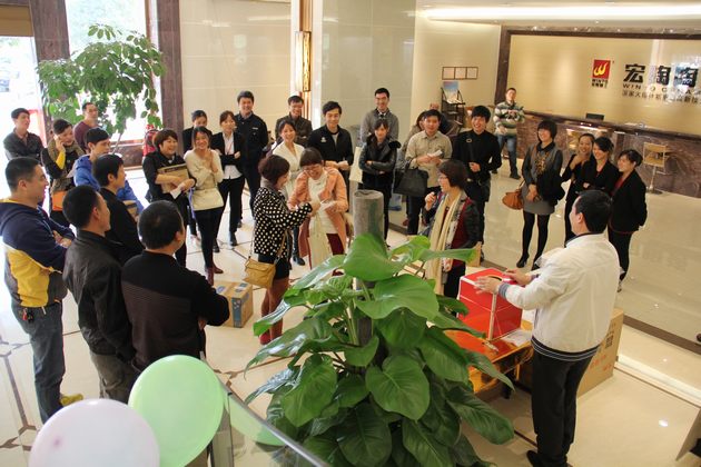 當(dāng)日下午1點30分,在宏陶經(jīng)銷商的帶領(lǐng)下40多名佛山三水的業(yè)主乘坐豪華大巴抵達(dá)佛山宏陶陶瓷總部展廳,參與宏陶陶瓷為他們籌劃的“下定有禮”、“超值特價”、“幸運大抽獎”一系列實惠的團購活動。