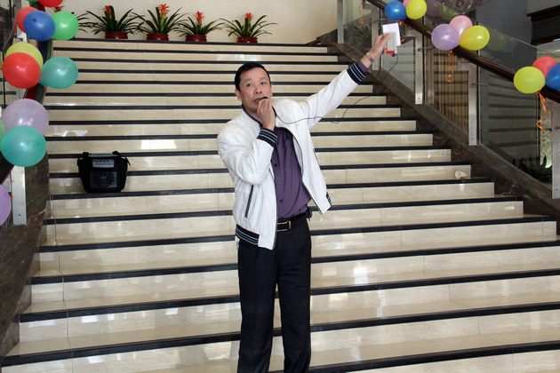圖3、宏陶市場總監(jiān)霍達(dá)炎介紹本次活動的禮品和獎品