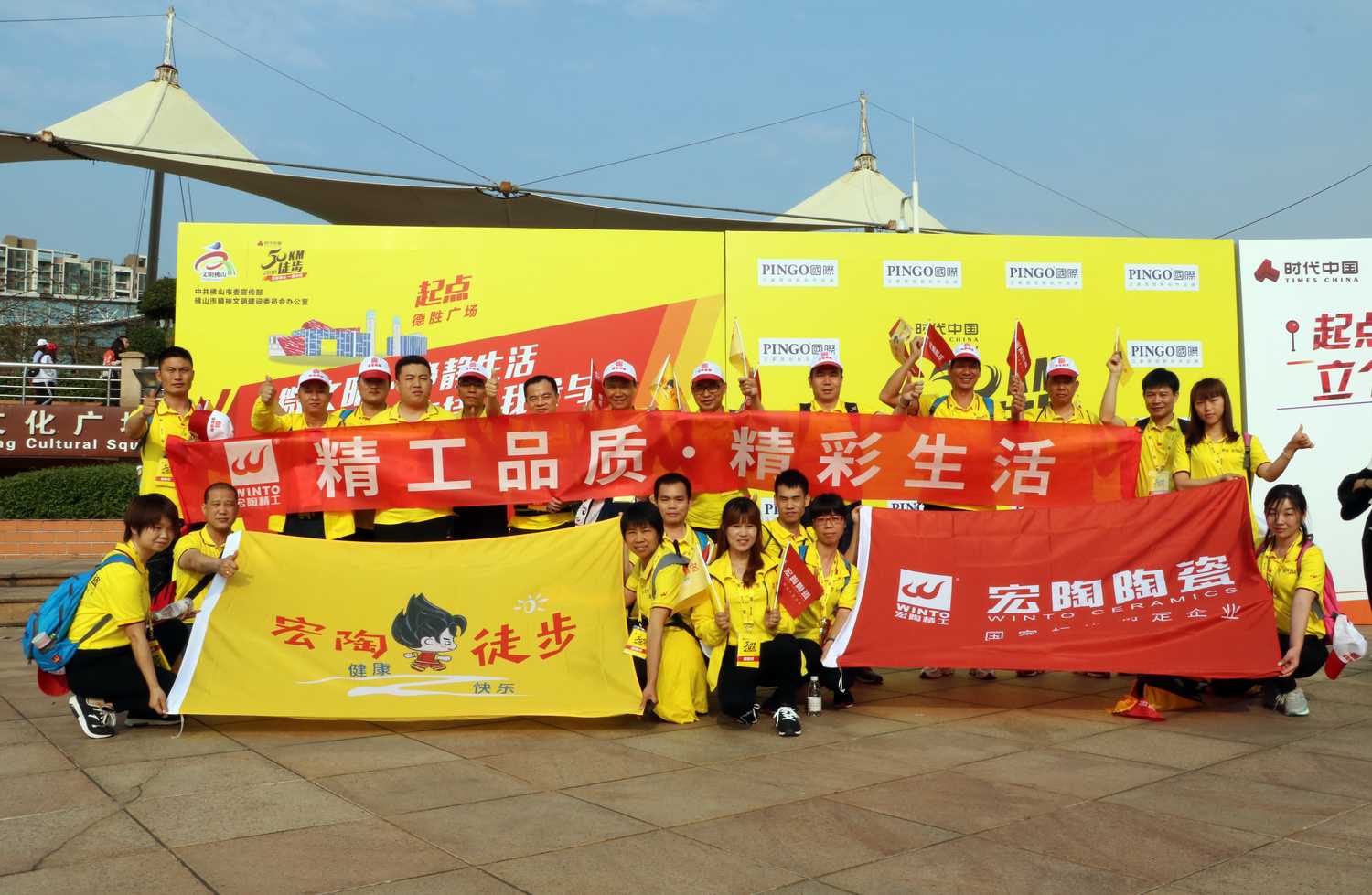 2018年3月31日,由佛山市體育局、佛山市升級辦、共青團(tuán)佛山市委等單位主辦,佛山電視臺、佛山市志愿者聯(lián)合會等單位承辦的“美麗佛山 一路向前”——2018年50公里徒步活動正式起步。此次徒步活動吸引了10萬以上市民參與同行,并受到了眾多媒體和社會各階層人士的廣泛關(guān)注,成為了佛山全民參與的城市盛事,并被寫入2018年佛山市政府工作報(bào)告。宏陶陶瓷也派出代表參加了此次活動。