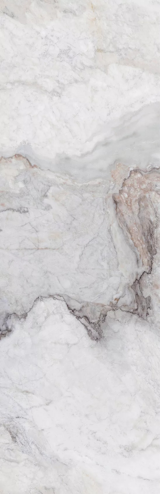 宏陶巖板6-TPG2680A015灰冰玉,一板4紋相連,勾勒了云霧中若隱若現(xiàn)的山脈脈絡(luò),像極一幅唯美的山水油畫??v橫紋理連貫延伸,營造大氣磅礴的氣勢。