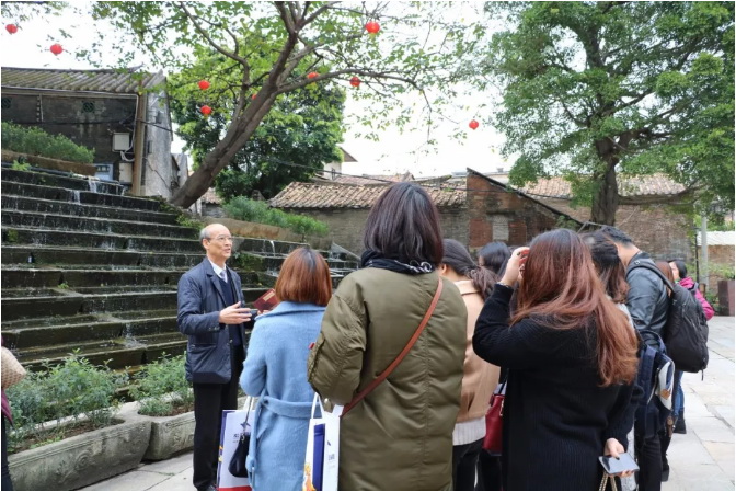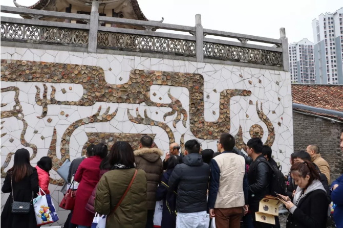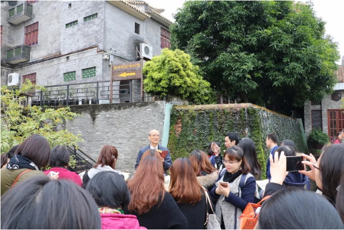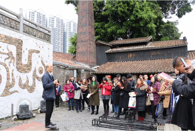 活動剛開始,歐總首先帶領(lǐng)媒體朋友們一起游覽了石灣源遠(yuǎn)流長陶瓷文化的歷史見證——南風(fēng)古灶。在500多年窯火不斷的南風(fēng)古灶龍窯前遙想石灣陶瓷輝煌的歷史、在明清古建筑群穿梭懷古、在古榕樹下?lián)峤褡肺?.....歐總一邊將南風(fēng)古灶各景點的歷史淵源娓娓道來,一邊為媒體朋友們誦讀他親自為各景點寫的詩詞,闡述他借詩詞所抒發(fā)的情懷。媒體記者們循著歐總的介紹,一邊看景,一邊品詩,眼睛和思想同時感受著石灣陶瓷的厚重歷史和文化魅力,美不勝收、意猶未盡。